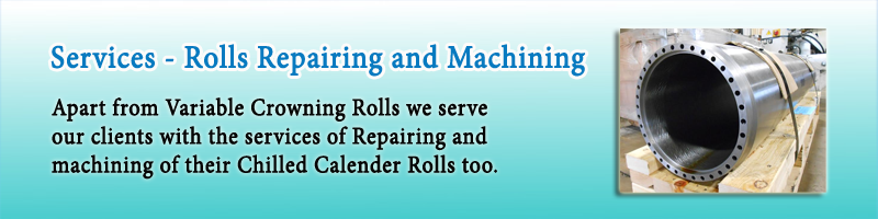 Apart from Variable Crowning Rolls we serve our clients with the services of Repairing and machining of their Chilled Calender Rolls too. Worn Out Bearing Sizes , Runout developed Rolls , Damaged Threads of Locknut of withdrawal sleevs type, Checking out the left out Chilled Depth and the hardness of the roll etc are some of the works that we carried out.